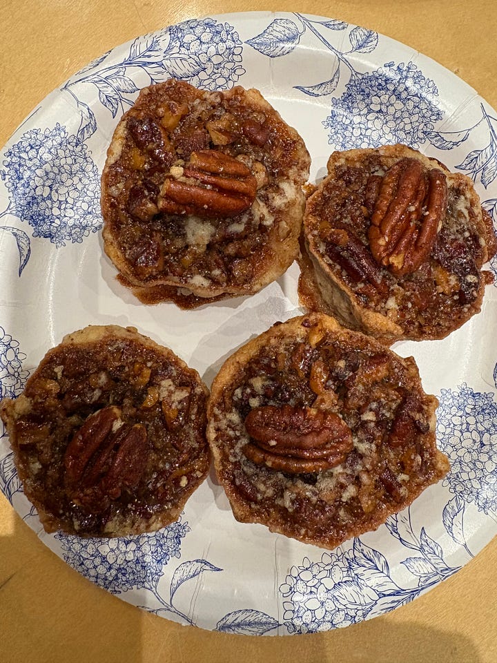 Clearly, I have a sweet tooth. It started with my grandmother, who was a dreamy cook. When I was little, I couldn’t decide which of her recipes I loved the most – rice pudding, peach cobbler, sweet potato pie, or apple pie. I landed on rice pudding, but it was a close call. In my book, All That She Carried, I included pecan dessert recipes to remind myself and readers that Black life was full of creative ways to care for loved ones even amid trouble and suffering. During a recent trip to Toronto, where I spoke on a panel with the fabulous novelist Esi Edugyan and the equally marvelous host and moderator Nahlah Ayed, I had a wonderful surprise: The producer of the Ideas podcast (Canadian Broadcasting Corporation), Greg Kelly, made one of the pecan cookie recipes, substituting in local maple syrup! They were scrumptious.
